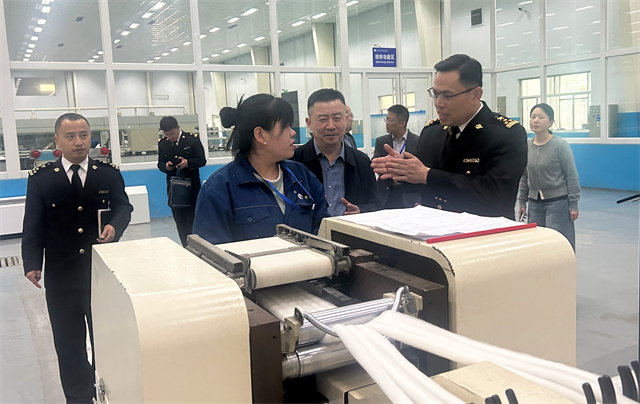 4月16日,濱州海關(guān)黨委書記、關(guān)長李光一行來公司參觀調(diào)研。濱州海關(guān)綜合業(yè)務一科科長劉金輝,綜合業(yè)務二科副科長朱士帥陪同調(diào)研。公司黨委委員、總經(jīng)理閆英山,市場運營部綜合事務管理主任楊霞,華紡國際進口部經(jīng)理韓黎明,服裝面料業(yè)務經(jīng)理王新東,儲運部主管楊箐箐陪同。